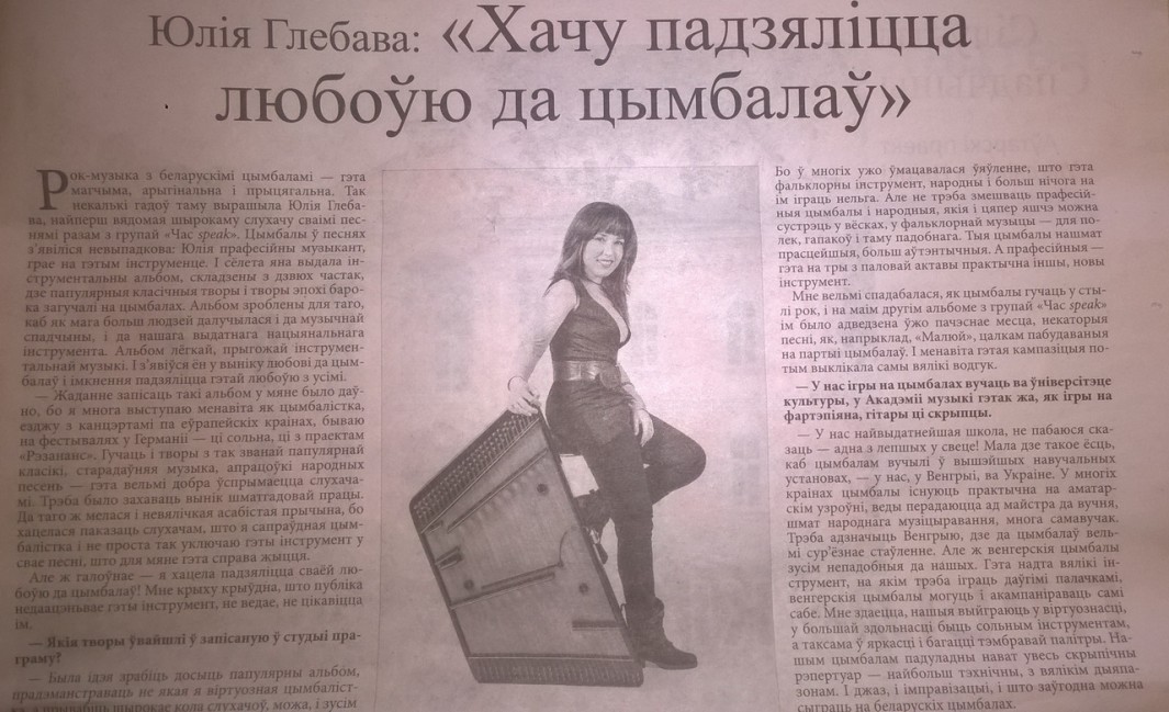 Так, в один прекрасный момент я решила записать и издать два диска - "Популярная классика в исполнении на цимбалах" и "Музыка Барокко в исполнении на цимбалах". Подробнее об этом в статье газеты "Літаратура і мастацтва".