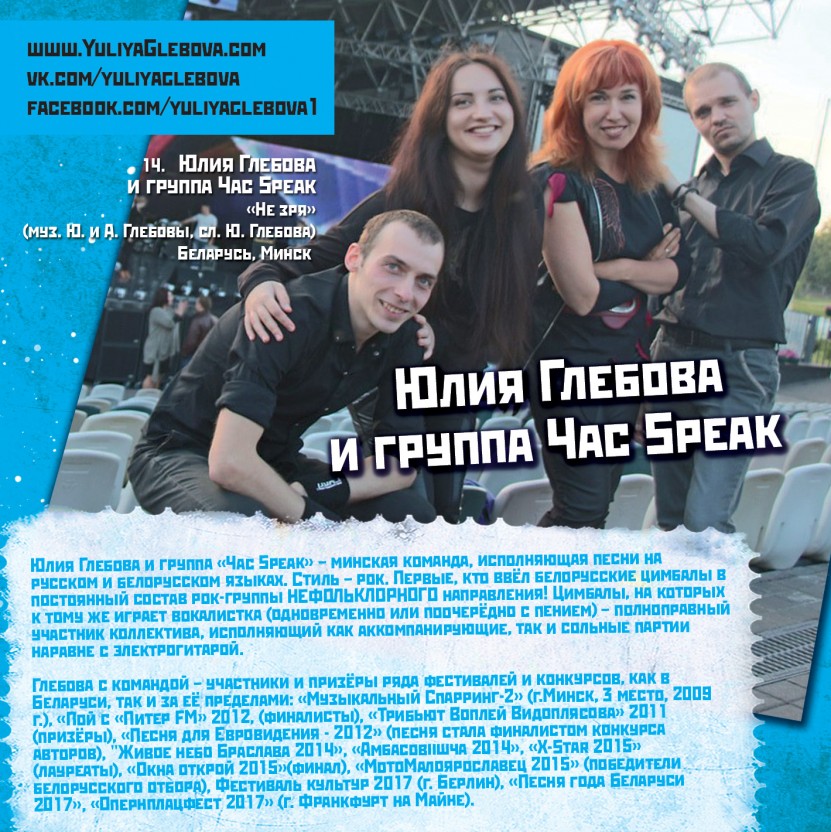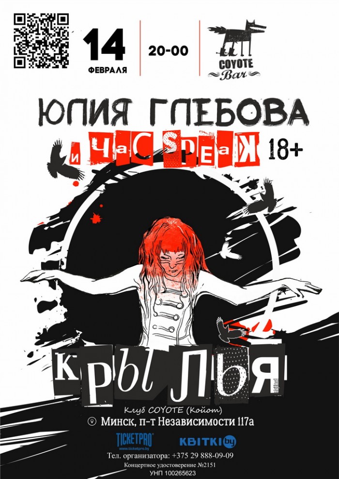 Дорогие наши друзья! 14 ФЕВРАЛЯ Юлия ГЛЕБОВА и группа ЧАС SPEAK зажгут в минском клубе Койот! Жарко будет не только влюблённым! Цимбалы, рок, чувственные песни от брутальной лирики до разрывного расколбаса! Плюс эксклюзив для зрителей (какой - скажем чуть позже).