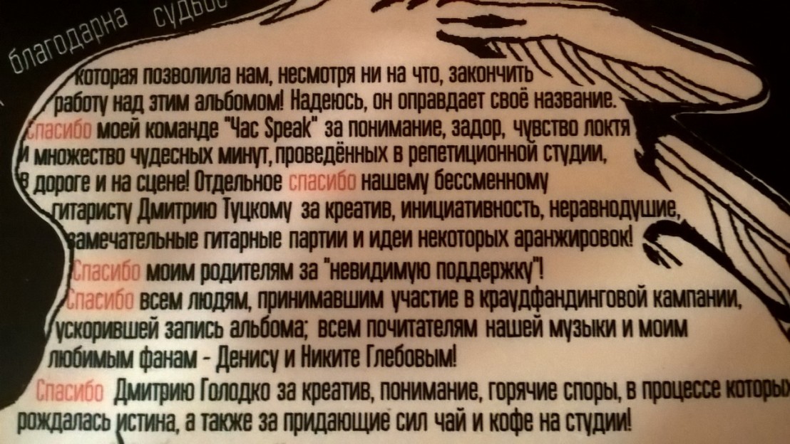 В свете последних событий очень хочется ещё раз поблагодарить всех причастных к созданию альбома "Крылья"! Как всё-таки здорово, что этот "ребёночек" 1 марта 2017 года появился на свет!!