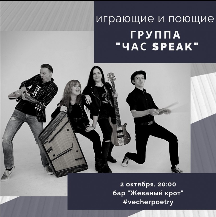 Друзья, в эту среду, 2 октября, мы приглашаем всех на поэтический вечер, где мы выступим в качестве музыкальных спецгостей!!