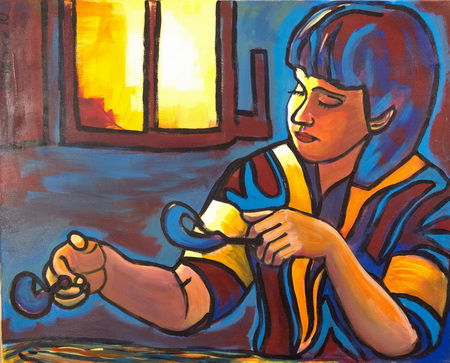 Друзья, разрешите представить картину в экспрессионистском стиле из триптиха "Цимбалистка" (по-немецки, "Zimbalspielerin") авторства германской художницы Маргариты Шибке. Маргарита написала её под впечатлением одного из моих выступлений в Германии. Мне кажется, во мне явно проступили китайские корни!