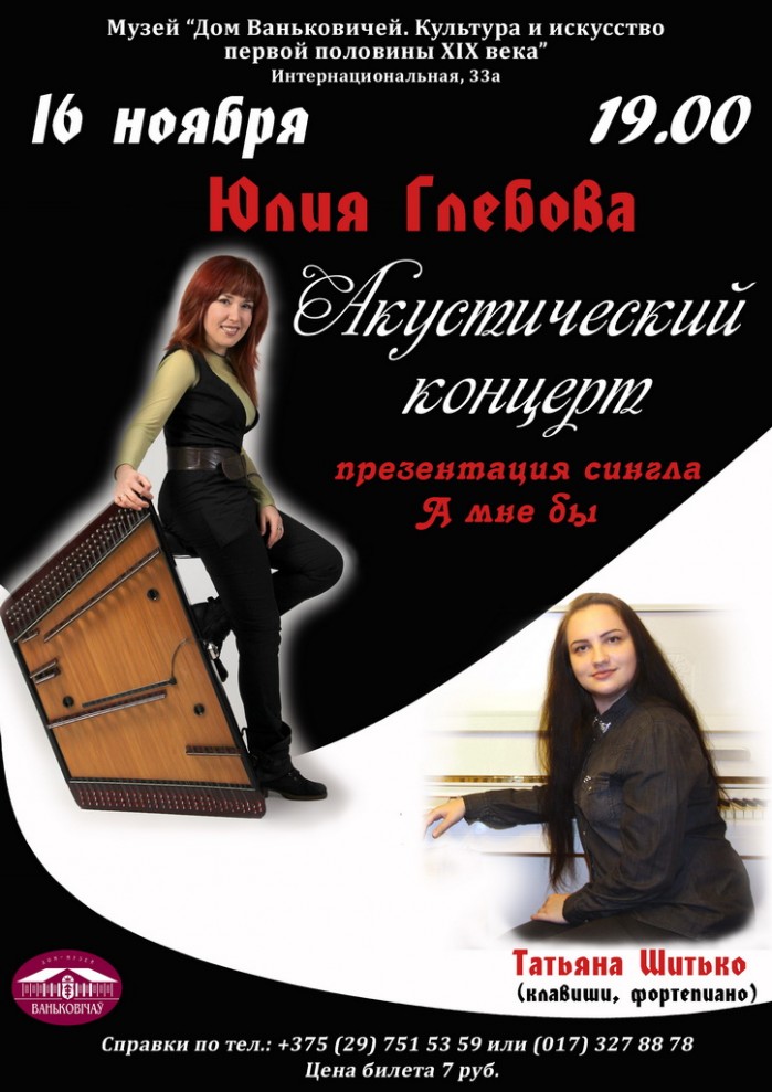 Друзья, с радостью и трепетом сообщаем, что 16 ноября в зале музея "Дом Ваньковичей" (Минск, Интернациональная, 33A) мы презентуем новый сингл "А мне бы" и дадим акустический концерт с нашими песнями в цимбально-фортепианном сопровождении! Песня "А мне бы" очень личная и сокровенная. Потому выпускать её в свет долго не решались..